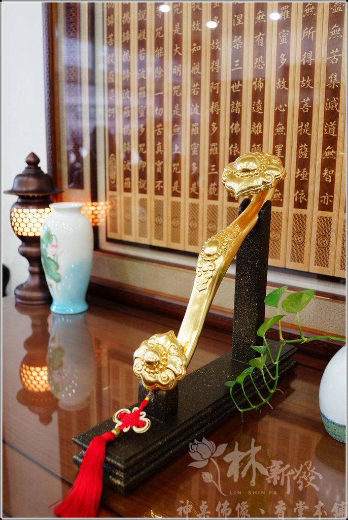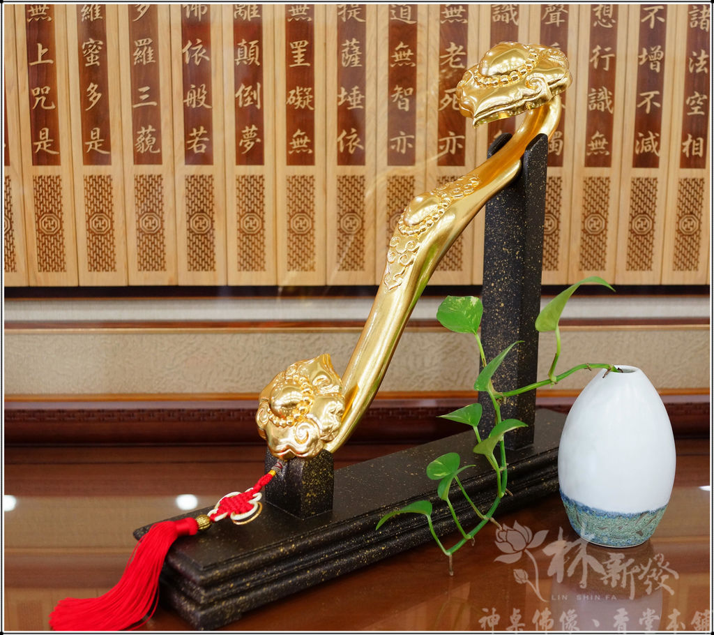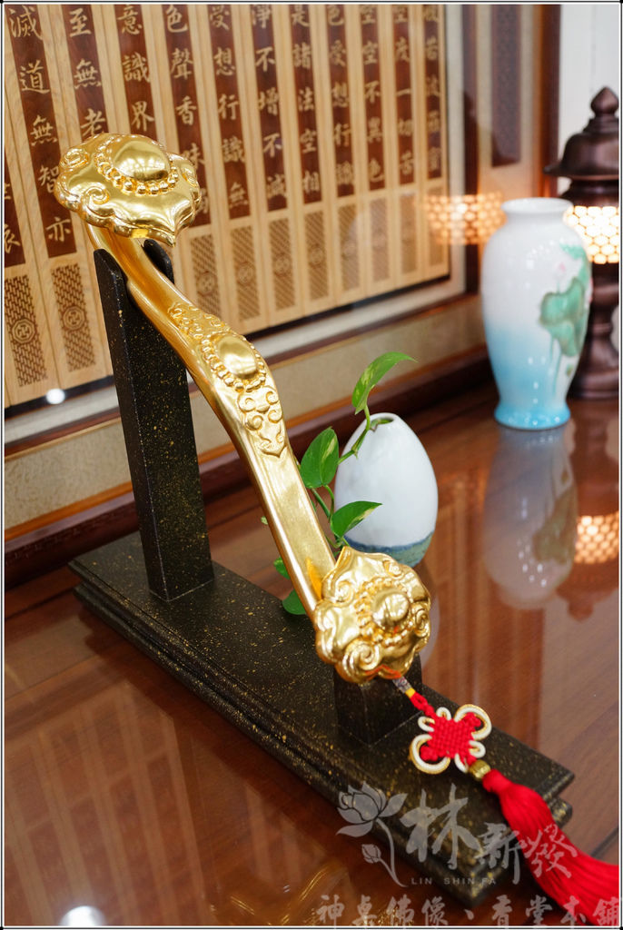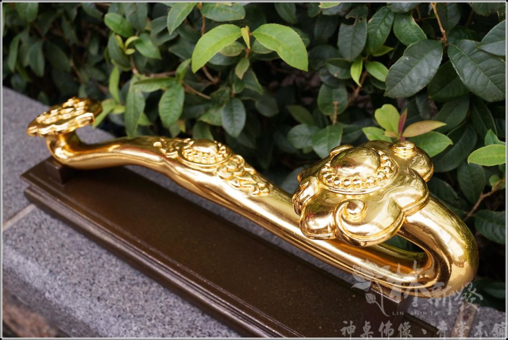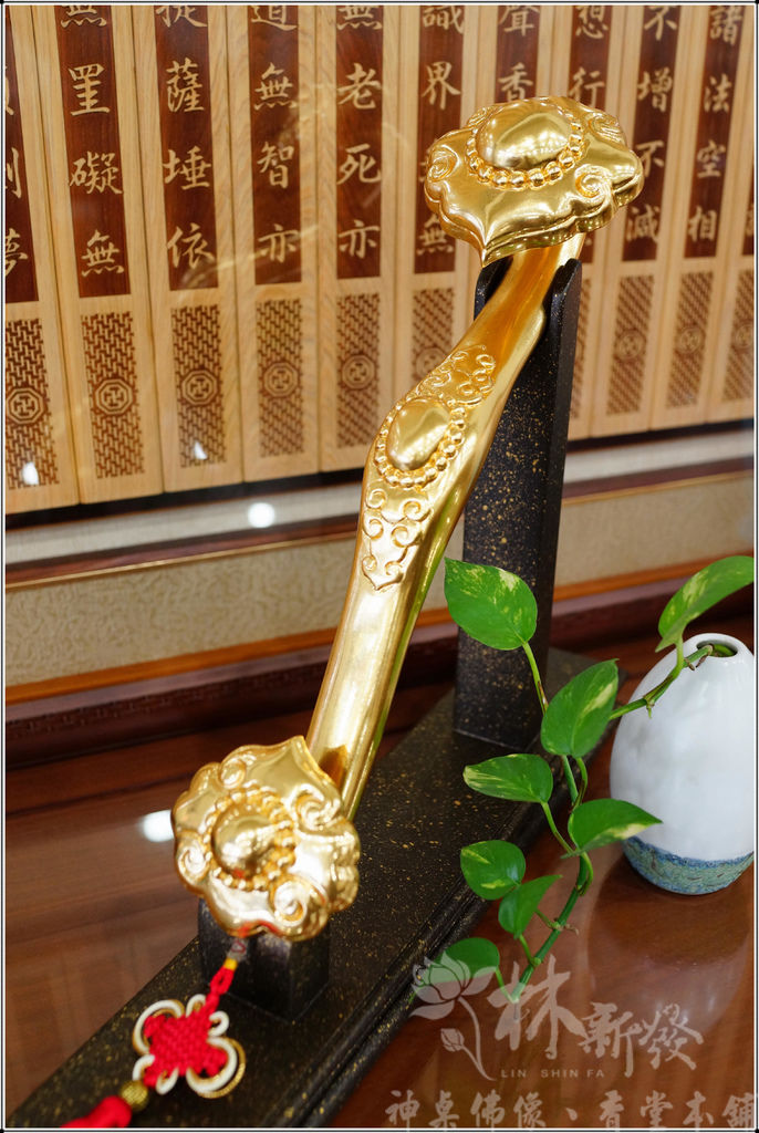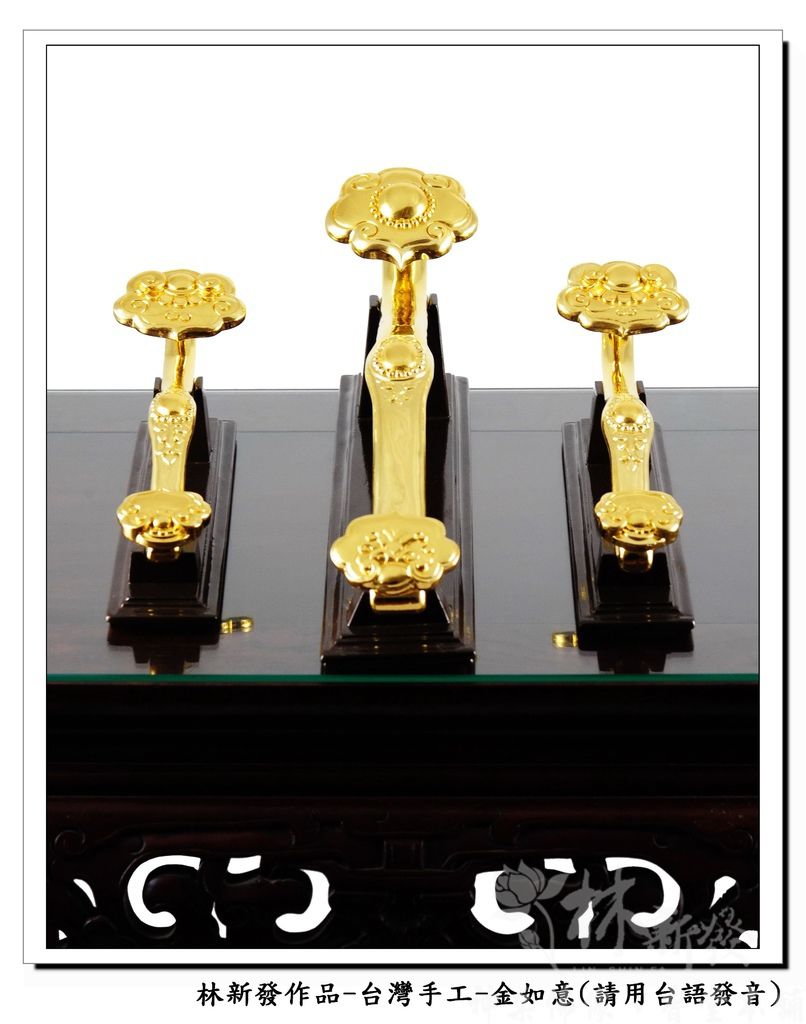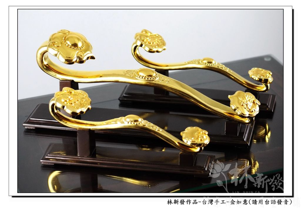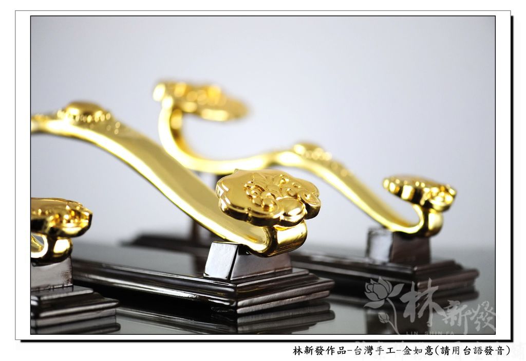 金如意是新發神藝的台灣全手工作品~雕刻完成整把貼上台灣純金箔,再加上防水保護漆~才符合金如意的感覺啦