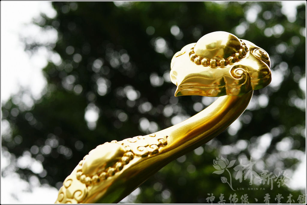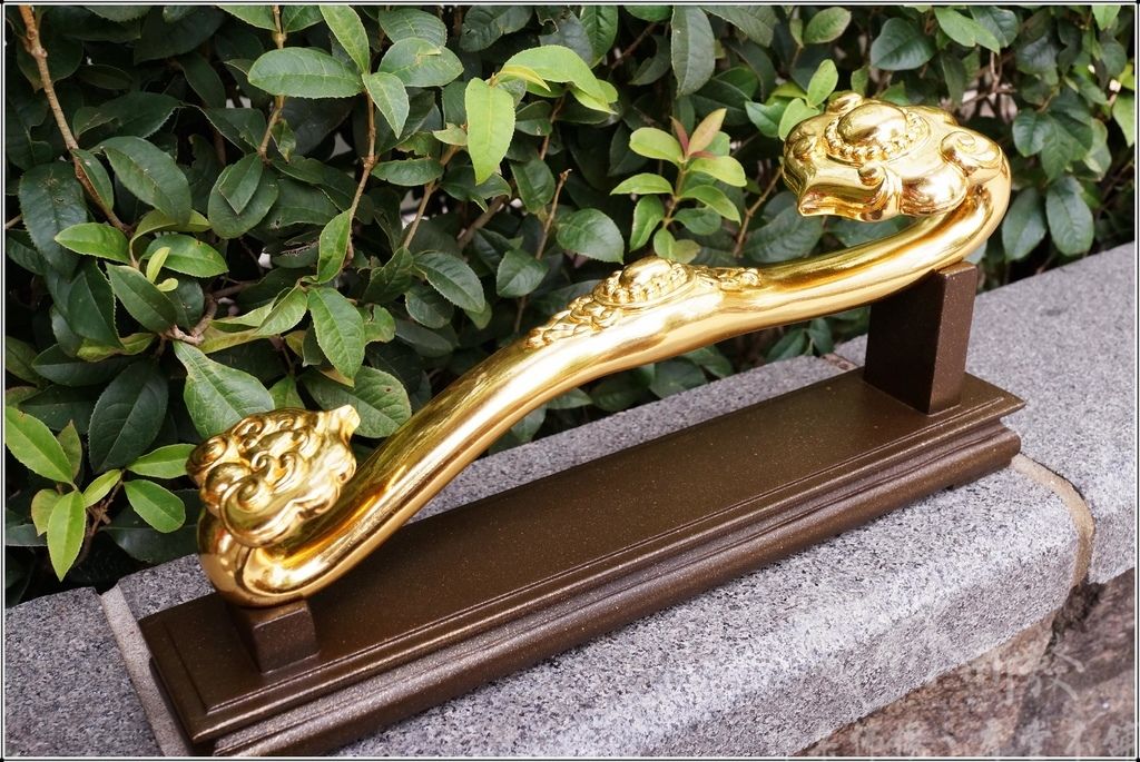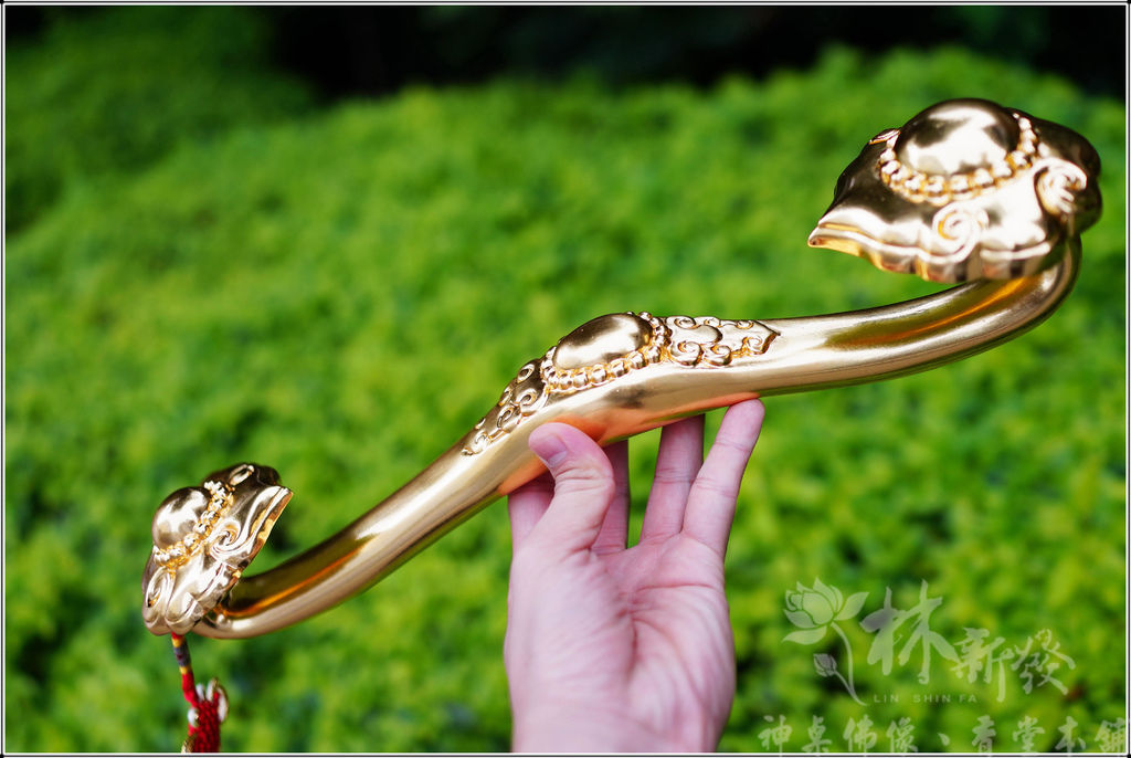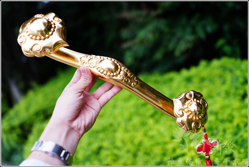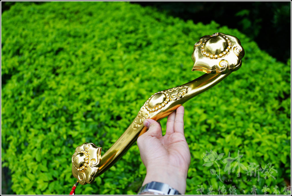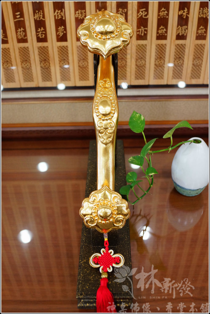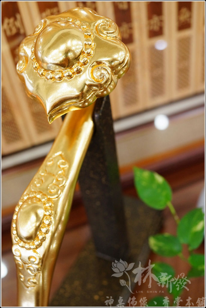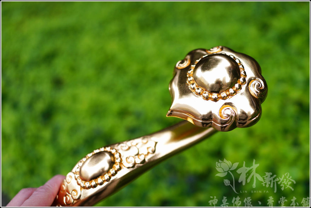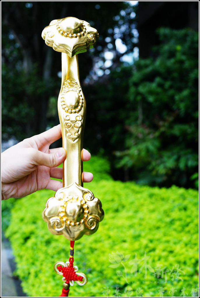 金如意是新發神藝的台灣全手工作品~雕刻完成整把貼上台灣純金箔,再加上防水保護漆~才符合金如意的感覺啦