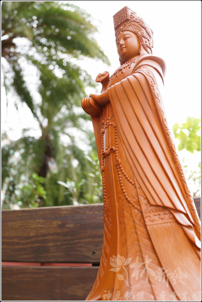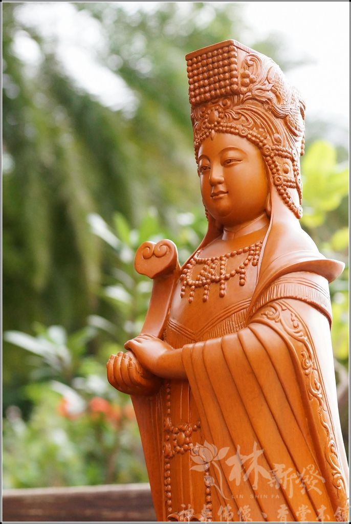 湄州慈悲媽祖娘娘~是特大石雕像的縮小版木雕創作,也是倫師夢想的實現,長久以來就跟這尊媽祖娘娘很有緣呢!