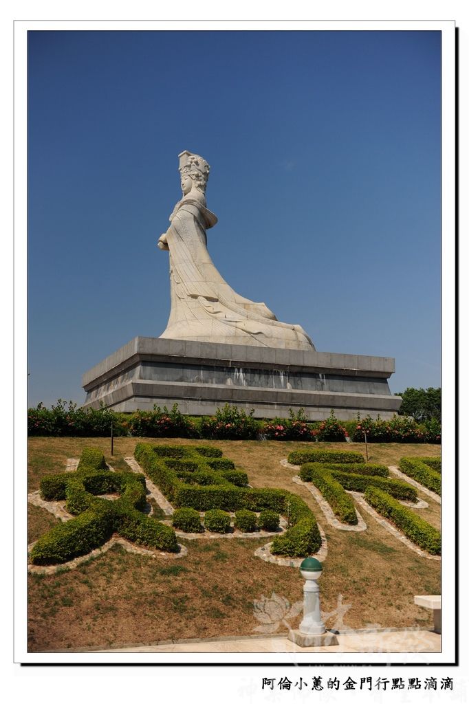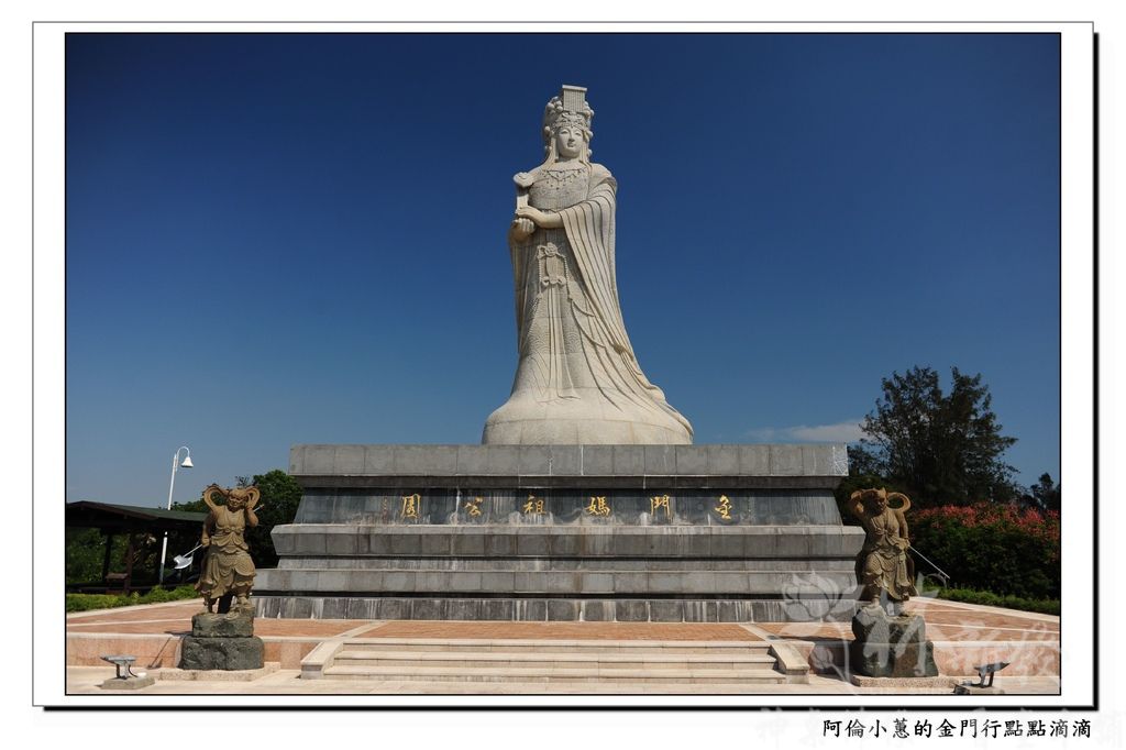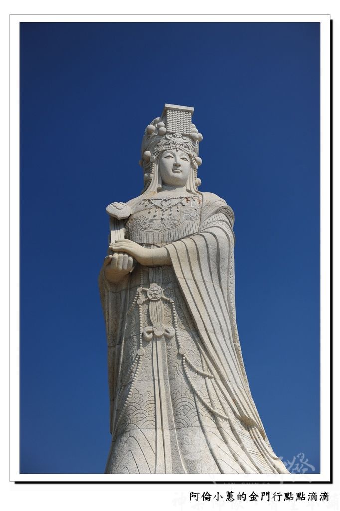 金門媽祖公園在料羅濱海公園的高地,占地四千平方公尺,這尊媽祖聖像是湄洲祖廟所贈送,其材質為白色的花崗岩
