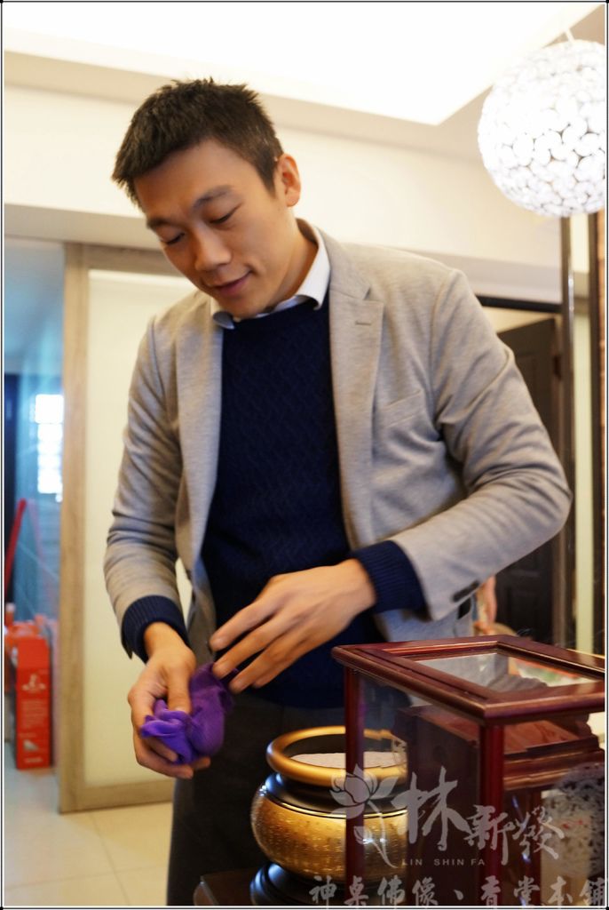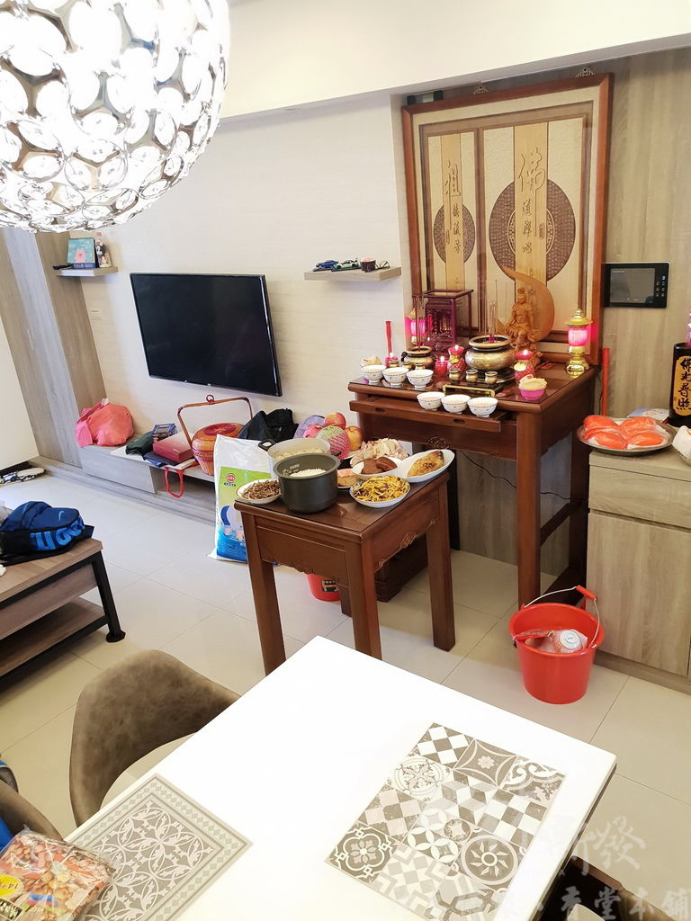 來到了新家,要先把所有的牌位佛俱都清理整潔,對了菩薩是倫師在五福宮開光完成的