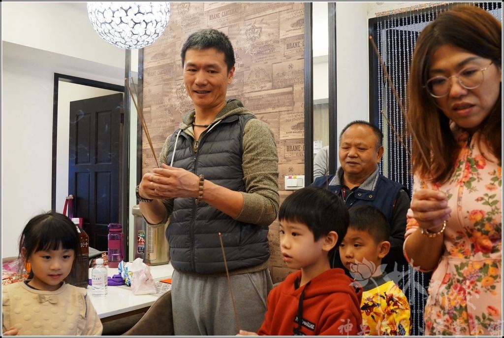 當然不能只在旁邊看,兒子做流程的攝影拍照,女兒也幫忙做入宅儀式還有拜神明喔~!這也是倫師第一次全程帶著小喬女兒工作^^