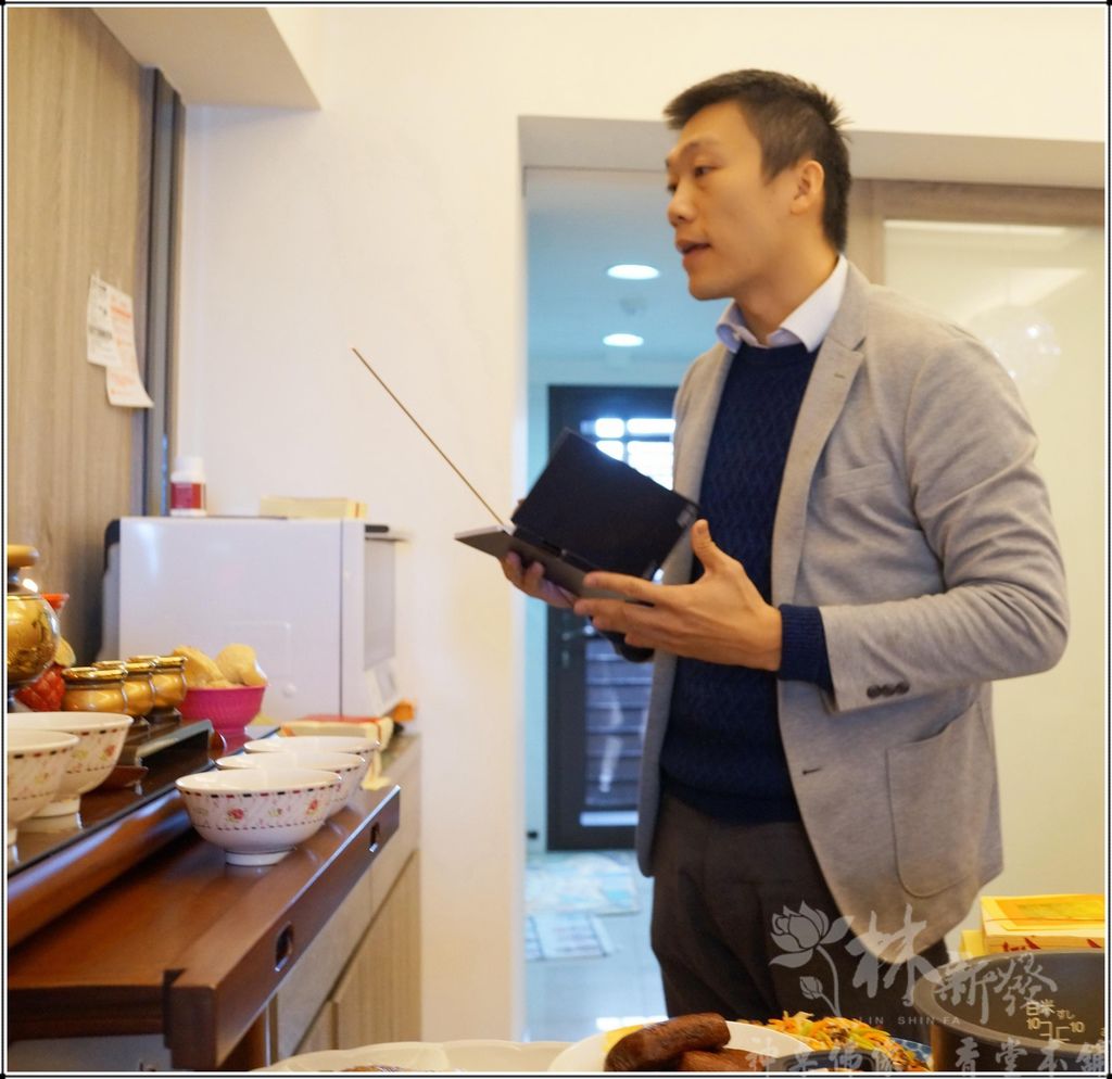 先是來到了中和的舊家,倫師稟報祖先,請祖先跟著我們的子孫,一起搬到新家喔!
