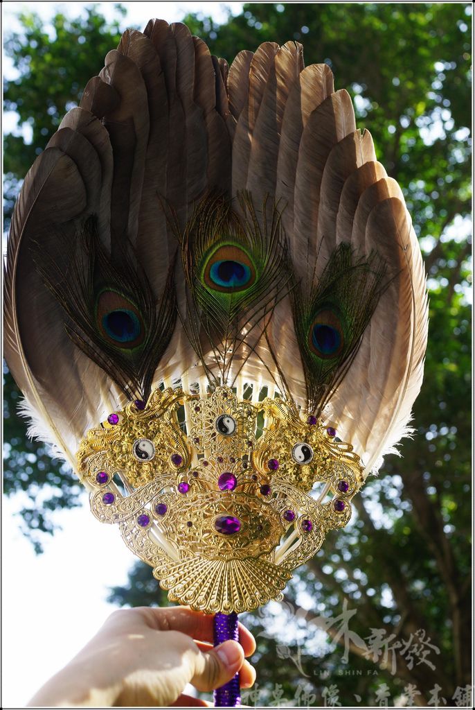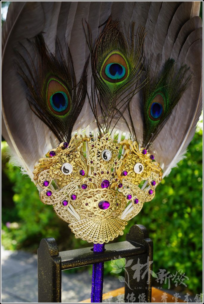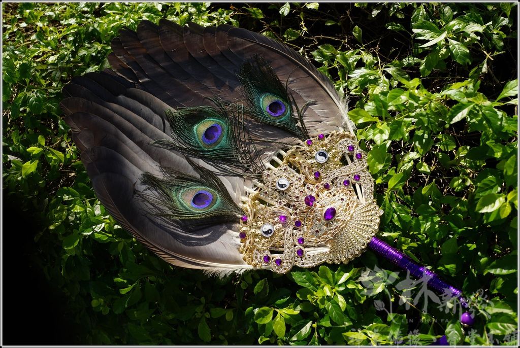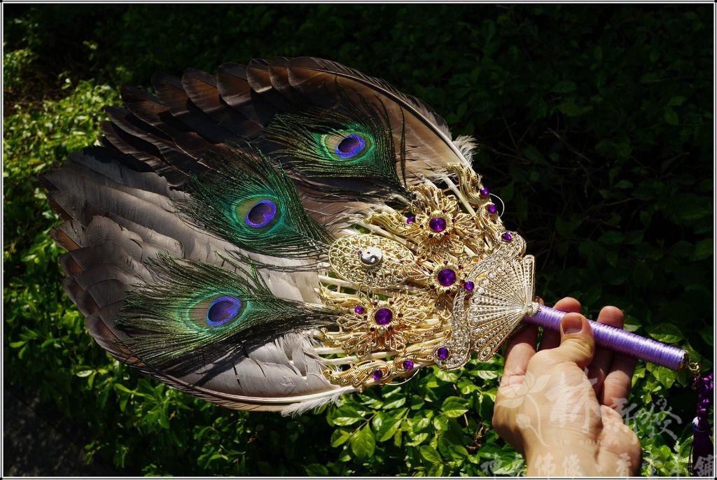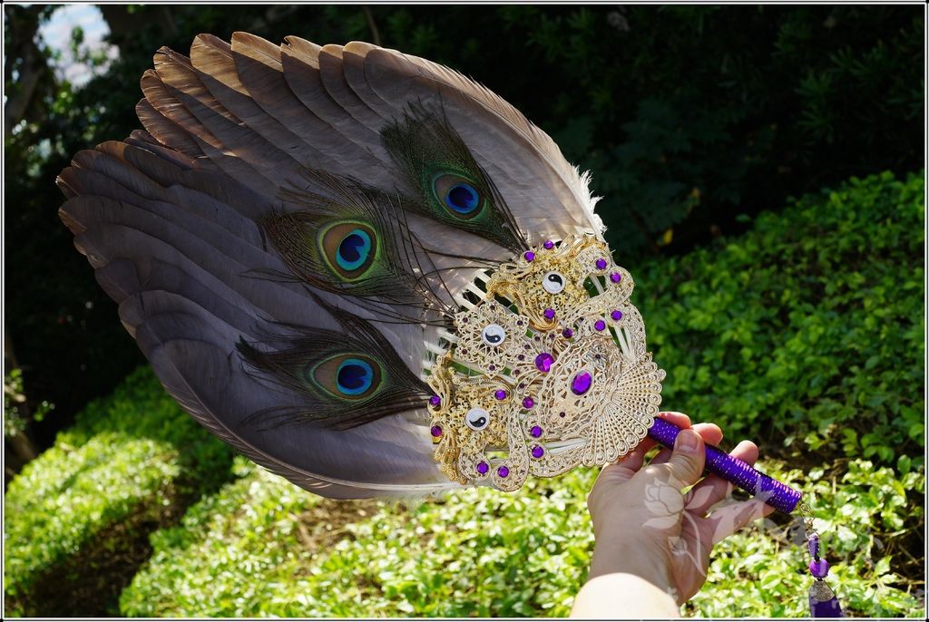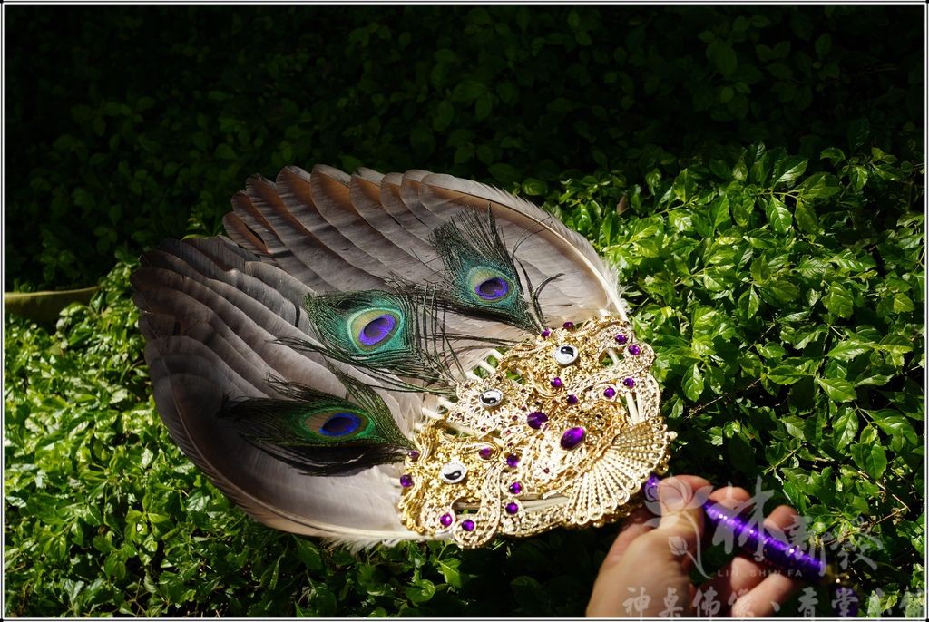 新設計兩款人用法扇,用的羽毛是天然羽毛喔!紫色是「破曉」的顏色,也是至高無上北極紫微的代表!