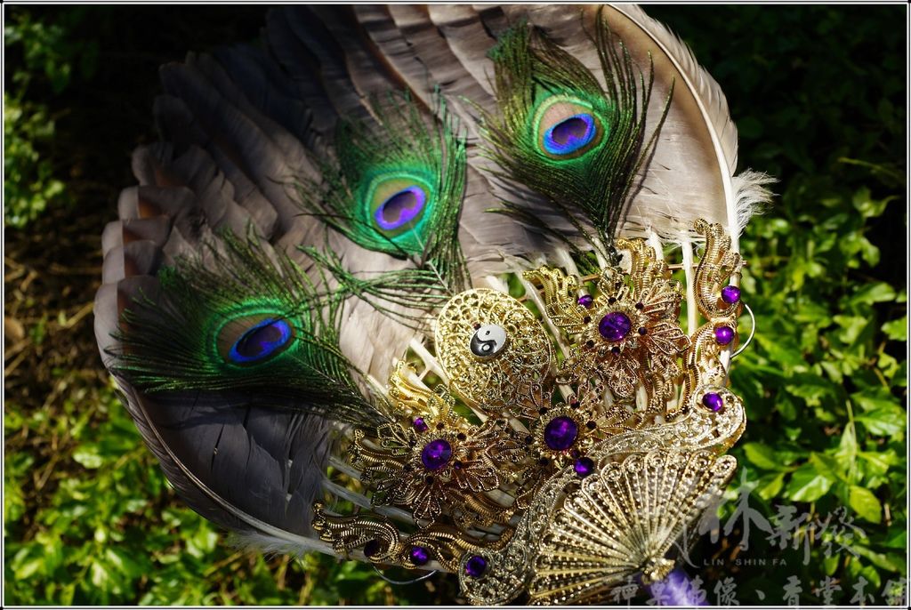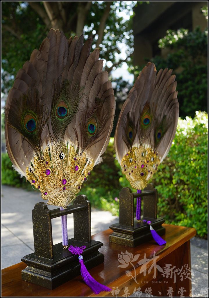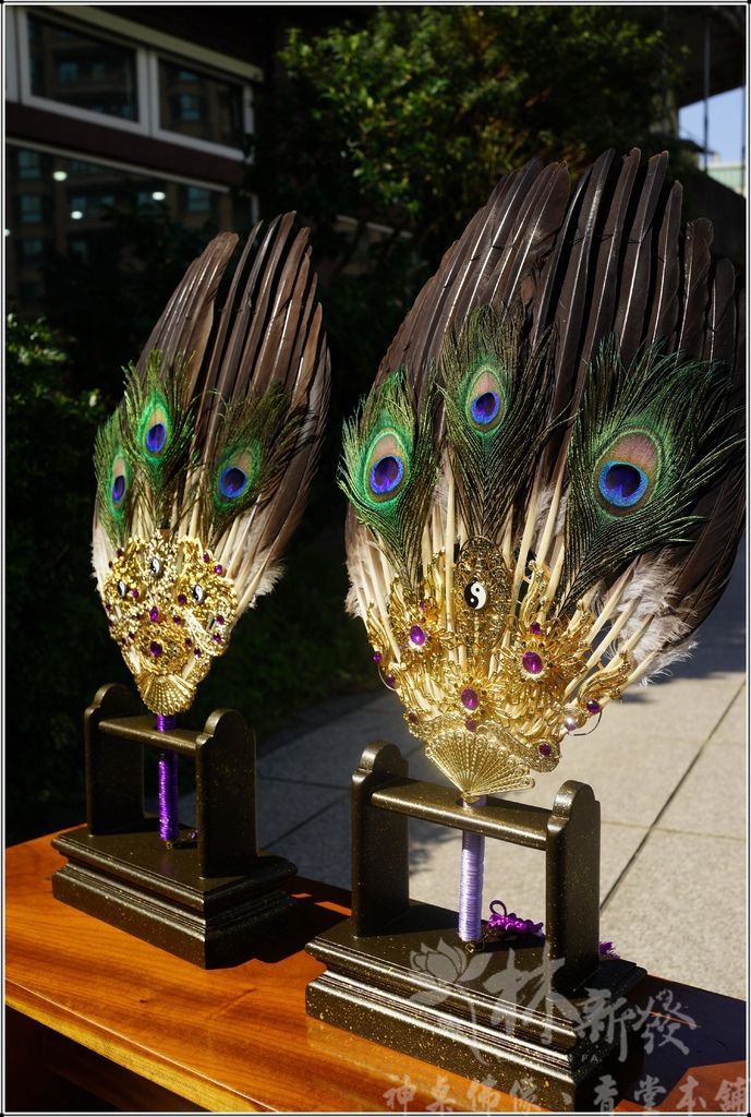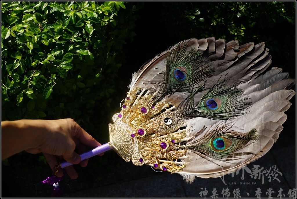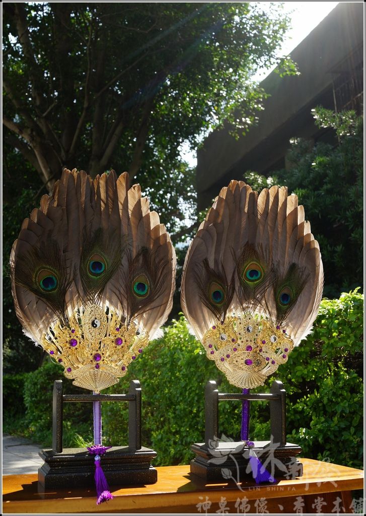 新設計兩款人用法扇,用的羽毛是天然羽毛喔!紫色是「破曉」的顏色,也是至高無上北極紫微的代表!