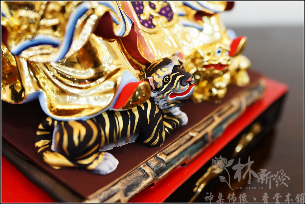 腳下踏著金獅.黑虎,是神明特別指式倫師細節去設計的,因為倫師也是林家人,所以!一定要幫林夫人完成最獨一無二的金身才行^^