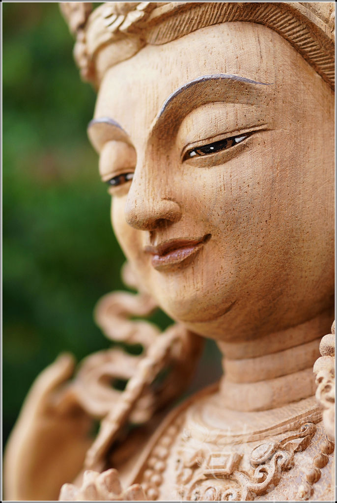 其下的蓮花則是象徵清境的境界,低目慈視莊嚴。菩薩慈悲為懷,用以加持、