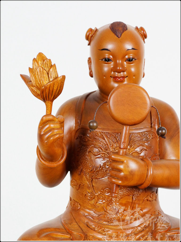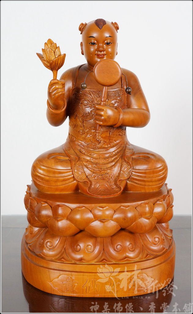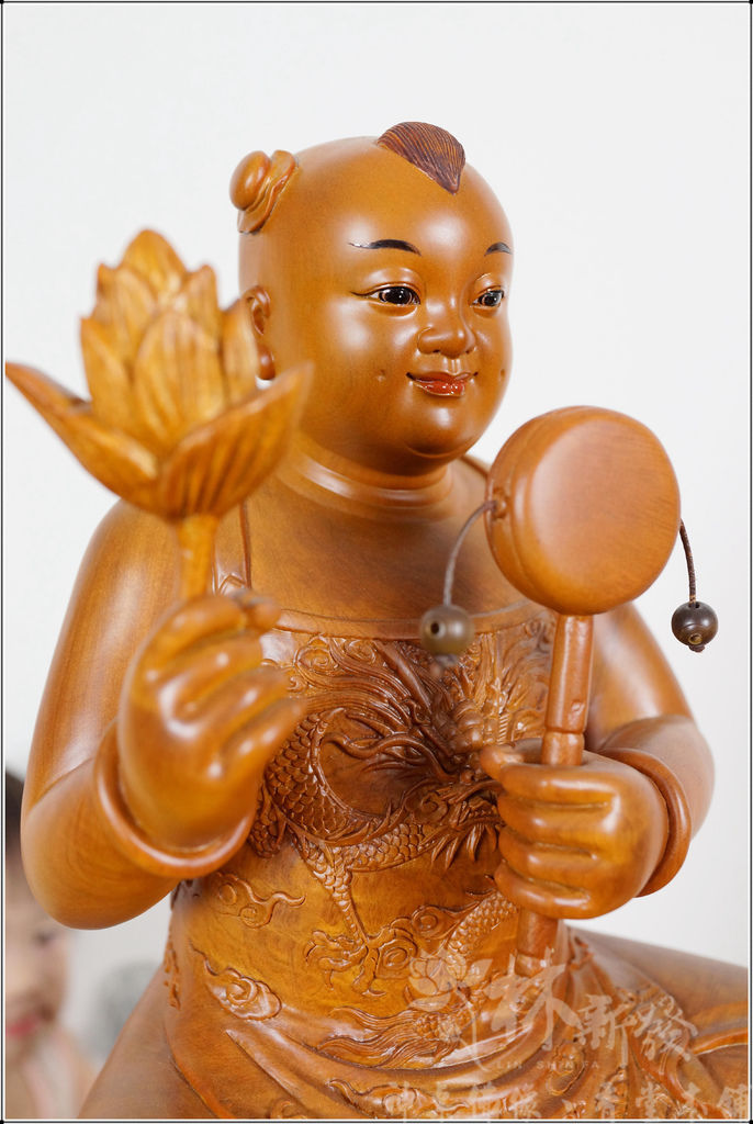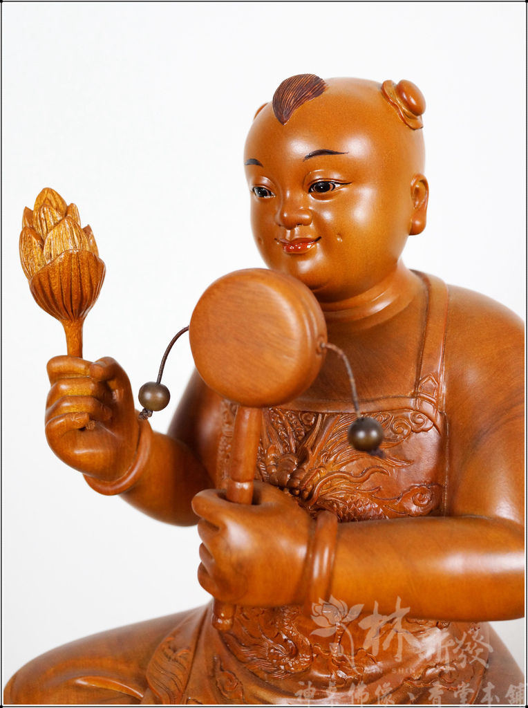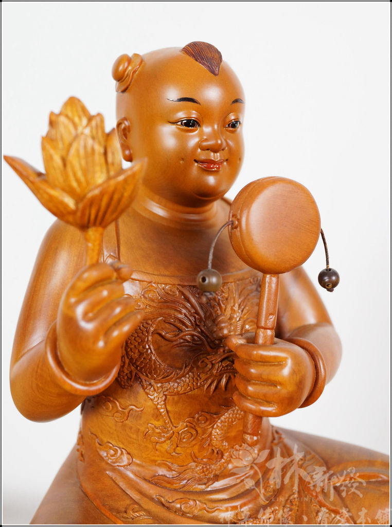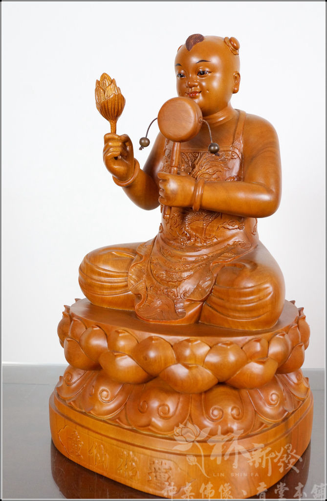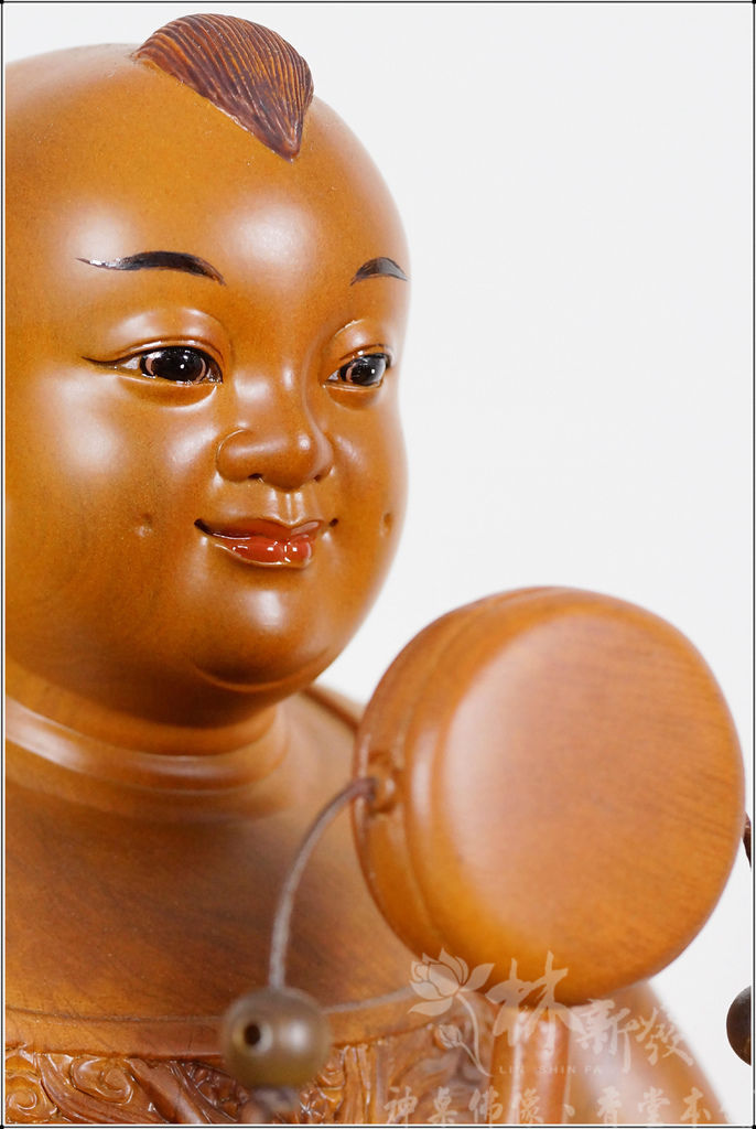 蓮花仙童真的超可愛,手上拿著童玩木鼓也是我們用梢楠木雕刻的喔~