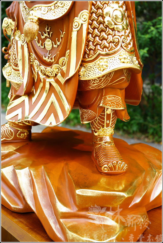 這次描金完成的作品是68公分高,每個來林新發欣賞作品的朋友們,見到帝君後都會發出大聲的讚嘆呢!