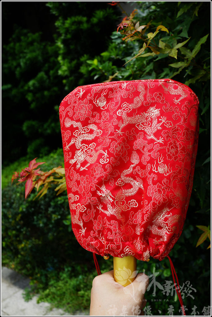 法器製做-木雕雙龍芭蕉扇(貼金.龍紋收納袋)