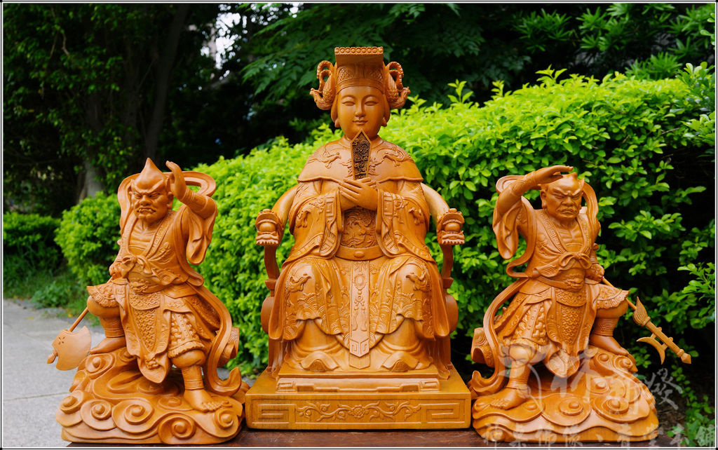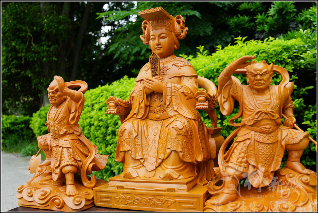 新發神藝-朝天媽祖.千順拱護(三尊是用同一塊木材分切雕刻的喔)