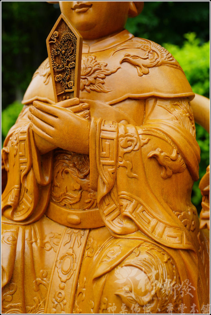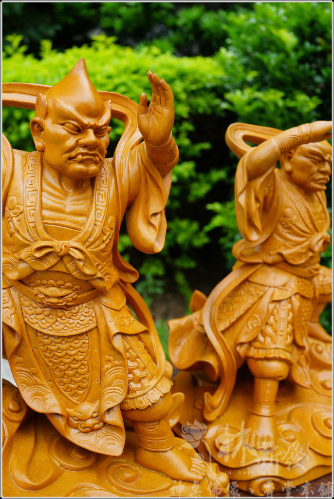 這次的媽祖千順創作,有一個媽祖娘娘特別要求的重點,就是要用主體雕刻媽祖金身的木材,用同塊木材分切製做千順護法!
