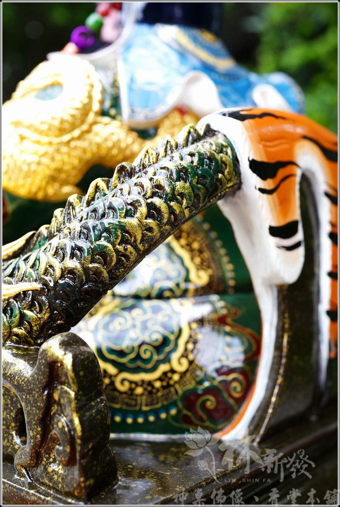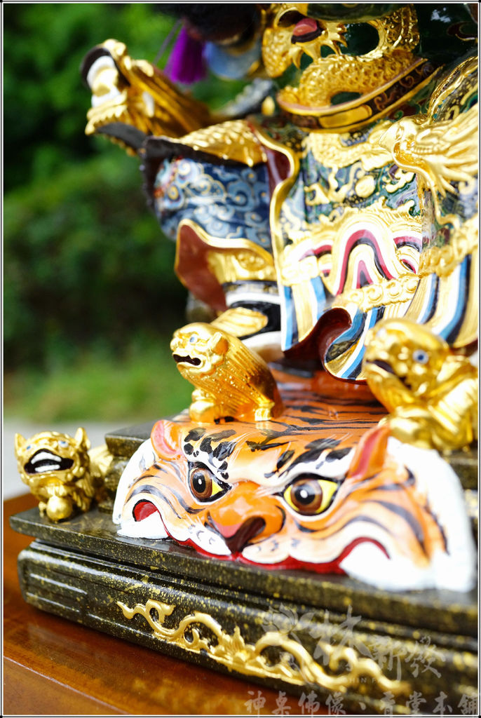 這裡分享大家是少見的尺三.八獅椅.全龍錦帶虎皮的帝君喔!難得一見的作品,以極細彩繪方式來呈現給大家