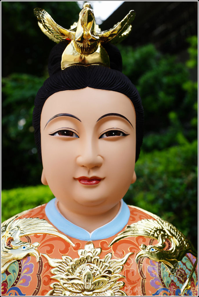 母娘金身是二尺二(68公分)高的創作,頭上的單鳳髮束也是跟著母娘的比例做細緻雕刻,經典的母娘作品請大家細細欣賞。