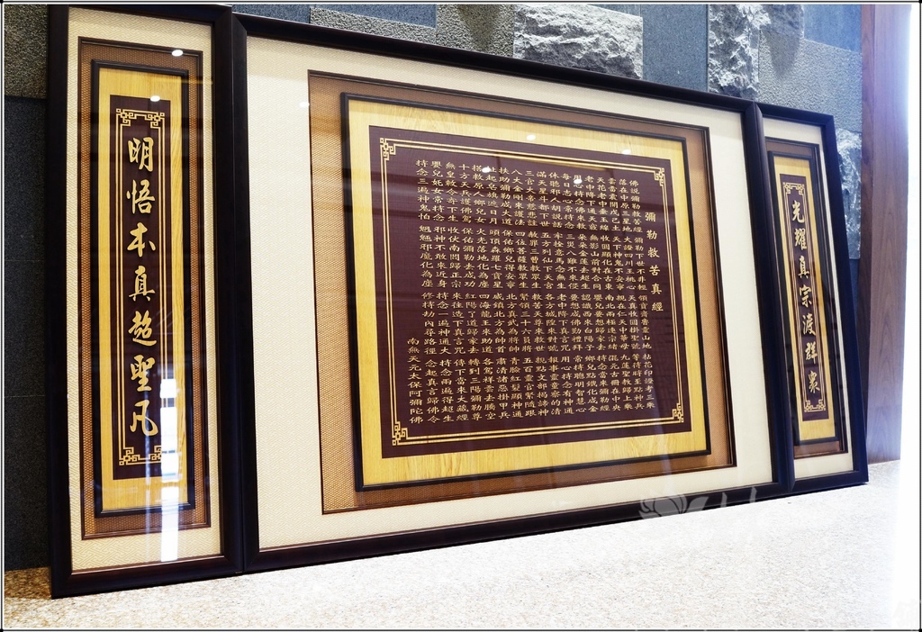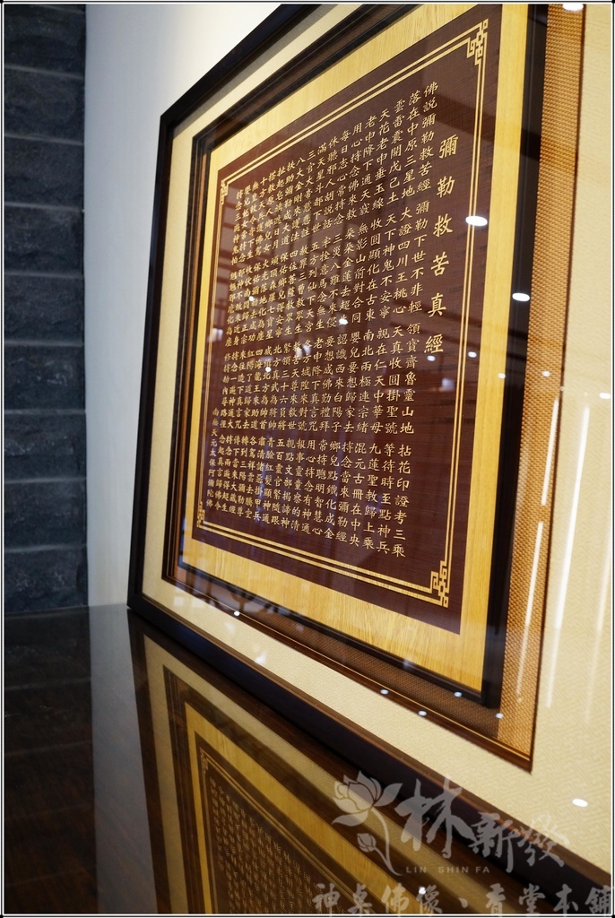 最後分享的是彌勒真經,這組加上對聯是七尺長,高度三尺五吋半的比例,彌勒真經共有504字喔!看看我們如何展現作品之美叭