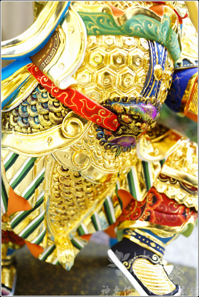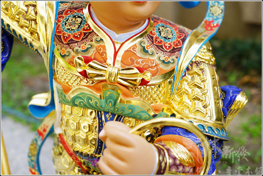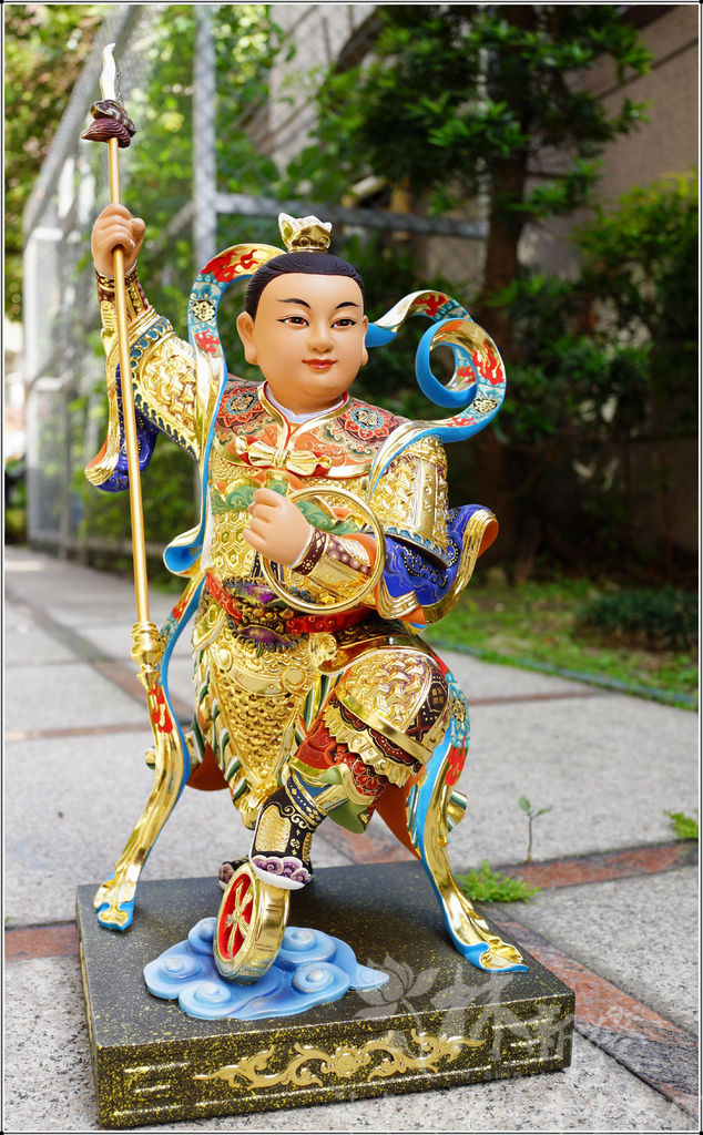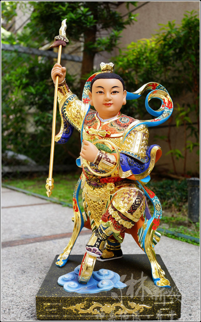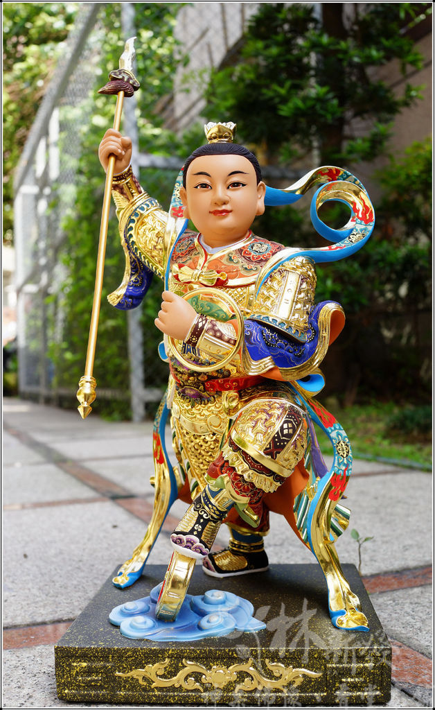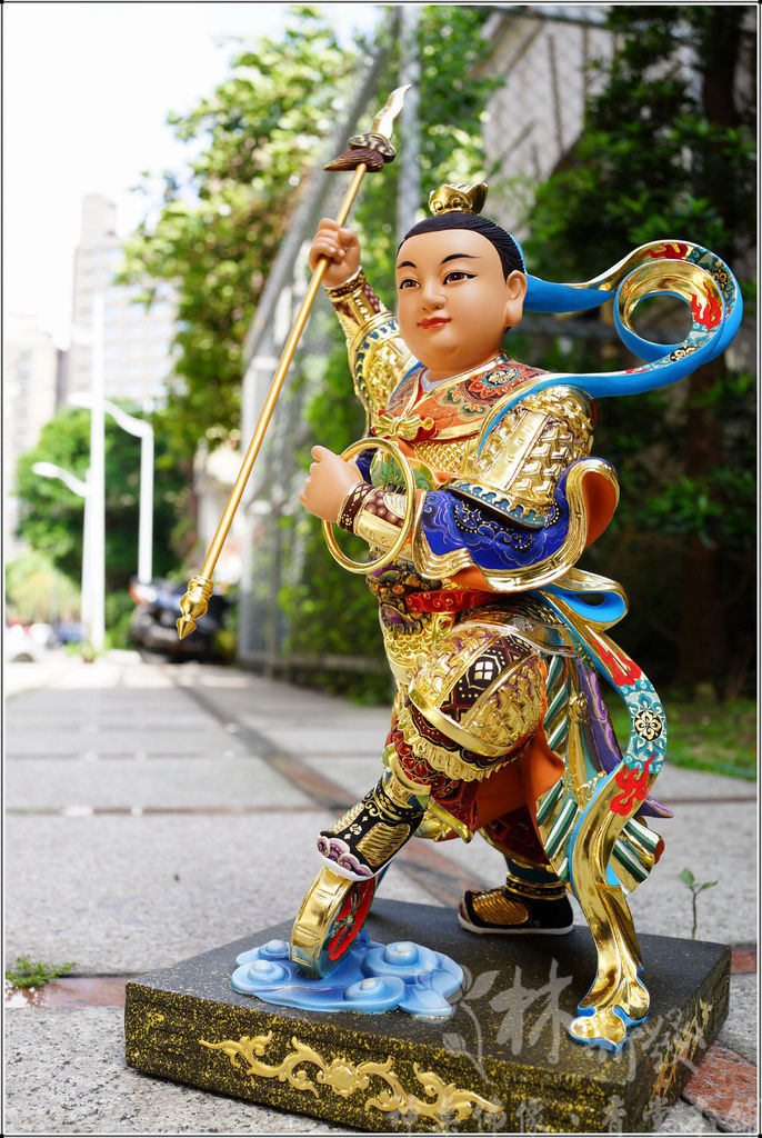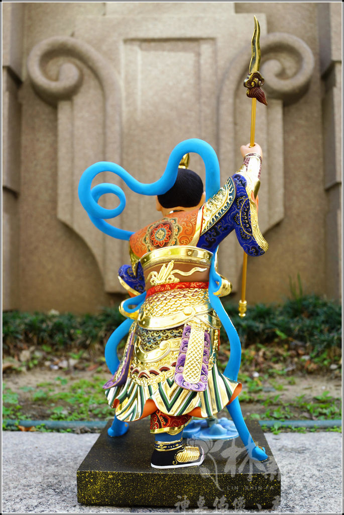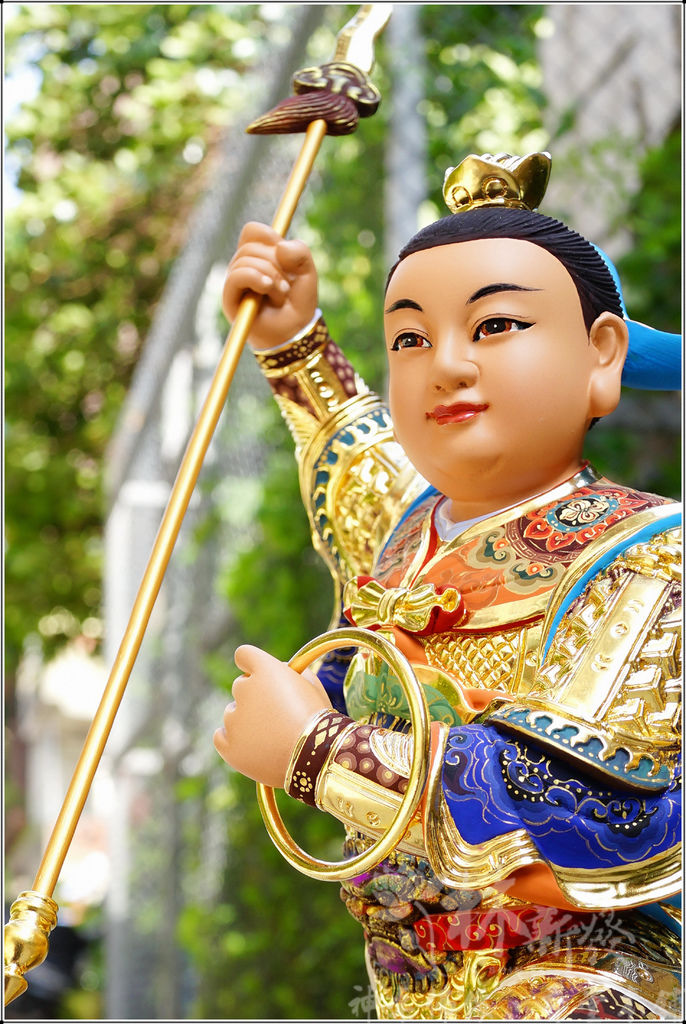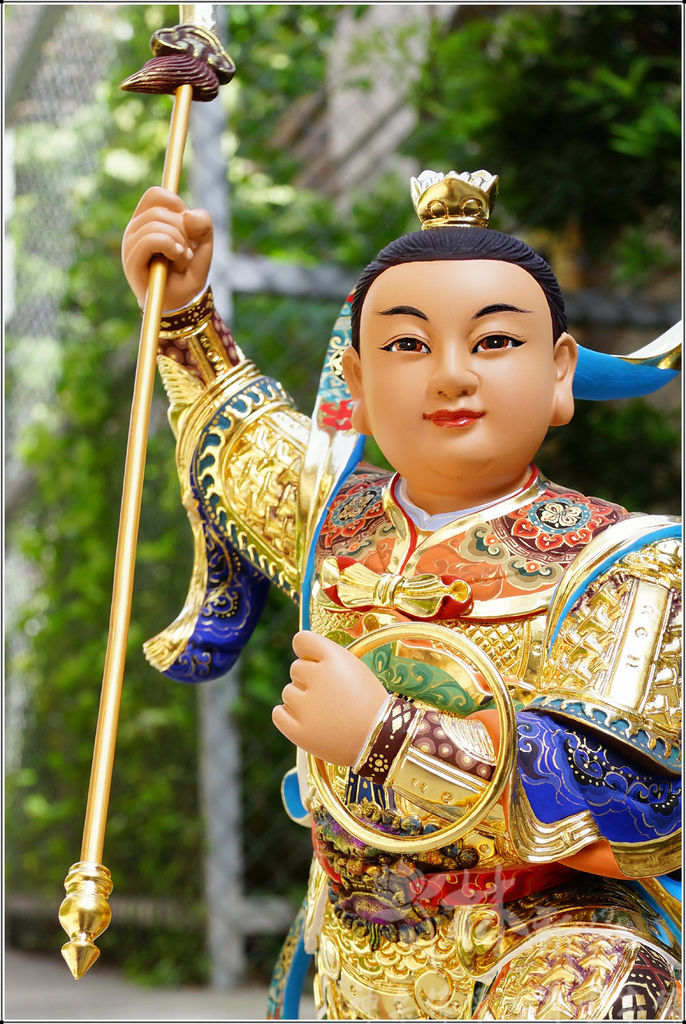 極細彩的風火輪小太子安座圓滿了,太子的金身戰甲以極細彩風格做彩繪,帥勁十足阿!