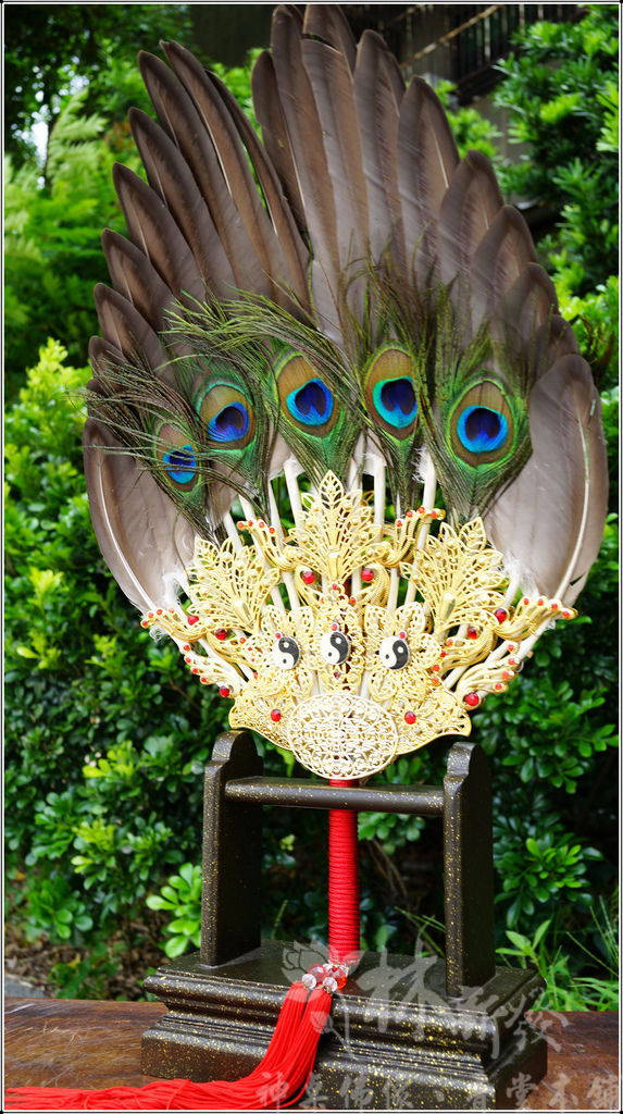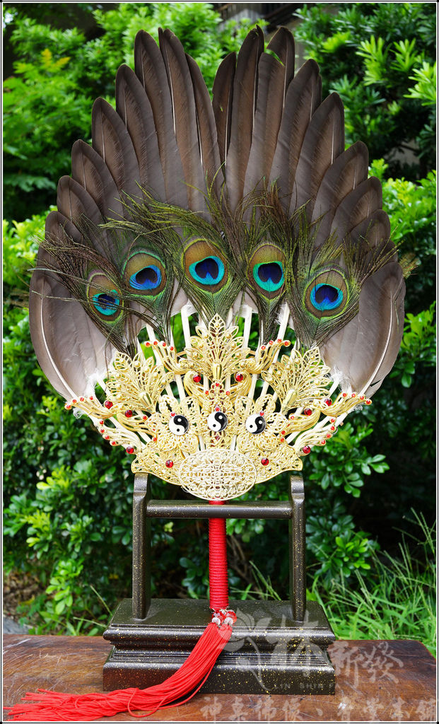 台灣手工羽扇作品-仙風道體。純淨白羽。紅彩濟世