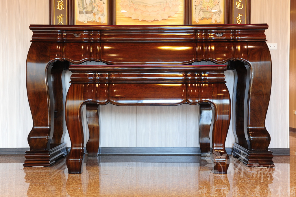七尺佛堂設計-黑紫檀特大腳拉米神桌(霸氣款)/手繪佛光觀世音