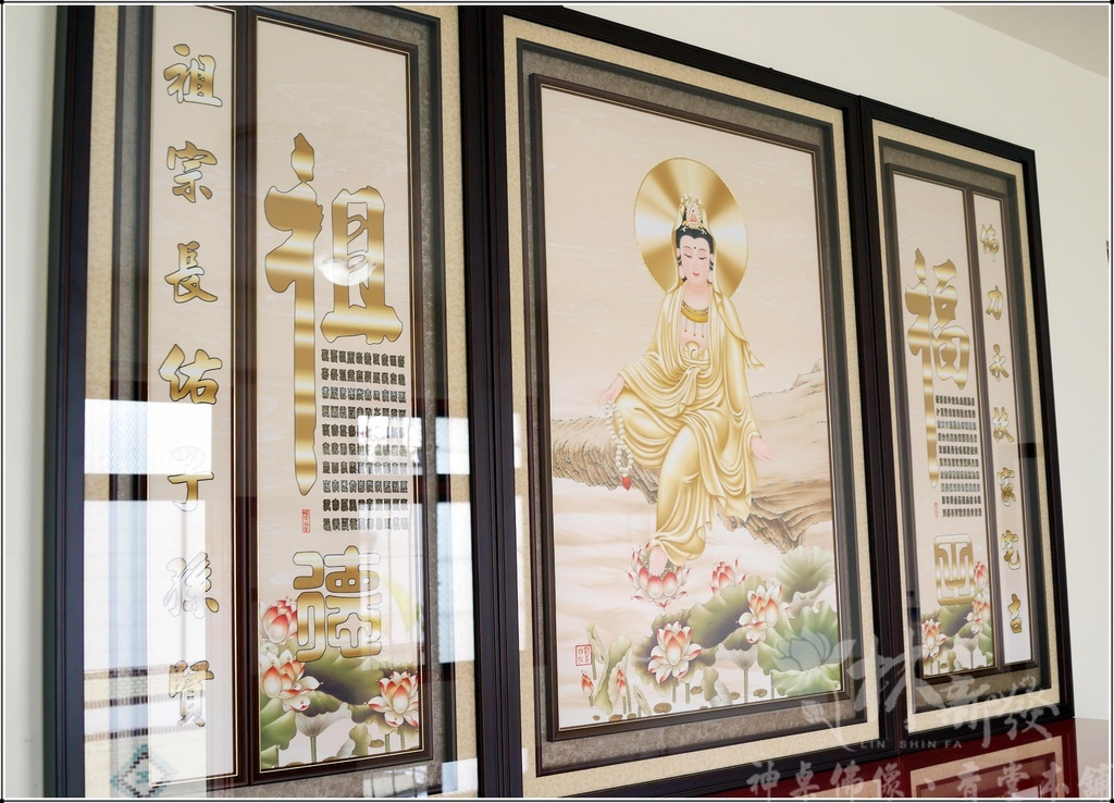 最新的款式!邊框也採用雙層立體框中框的做法~整副神聯的質感更顯高雅大方!!!每個用心都是為了讓您家的佛堂能有整體的氛圍,