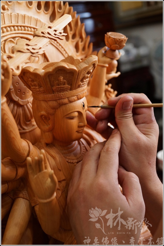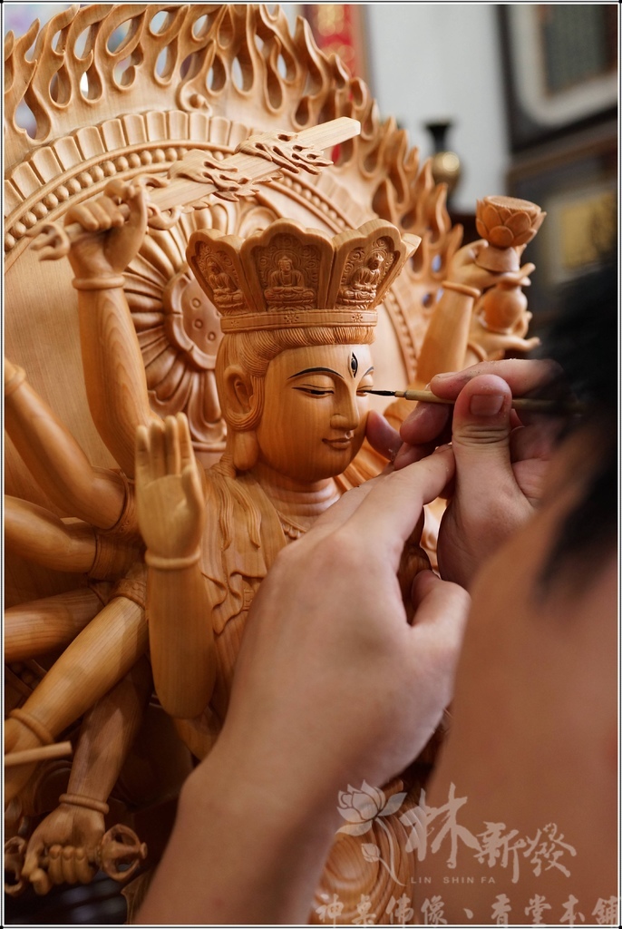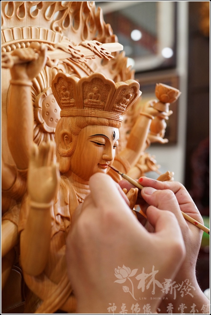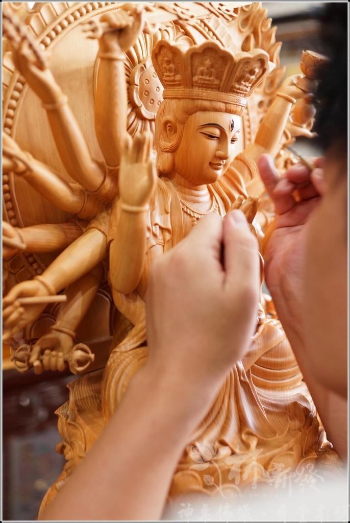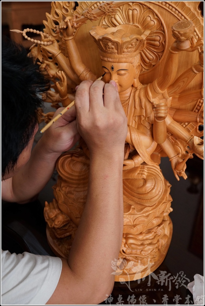 不同於大家以往看的準提作品,一樣是林新發佛法體師傅手工雕刻作品,展現的神韻非常的慈悲神聖喔