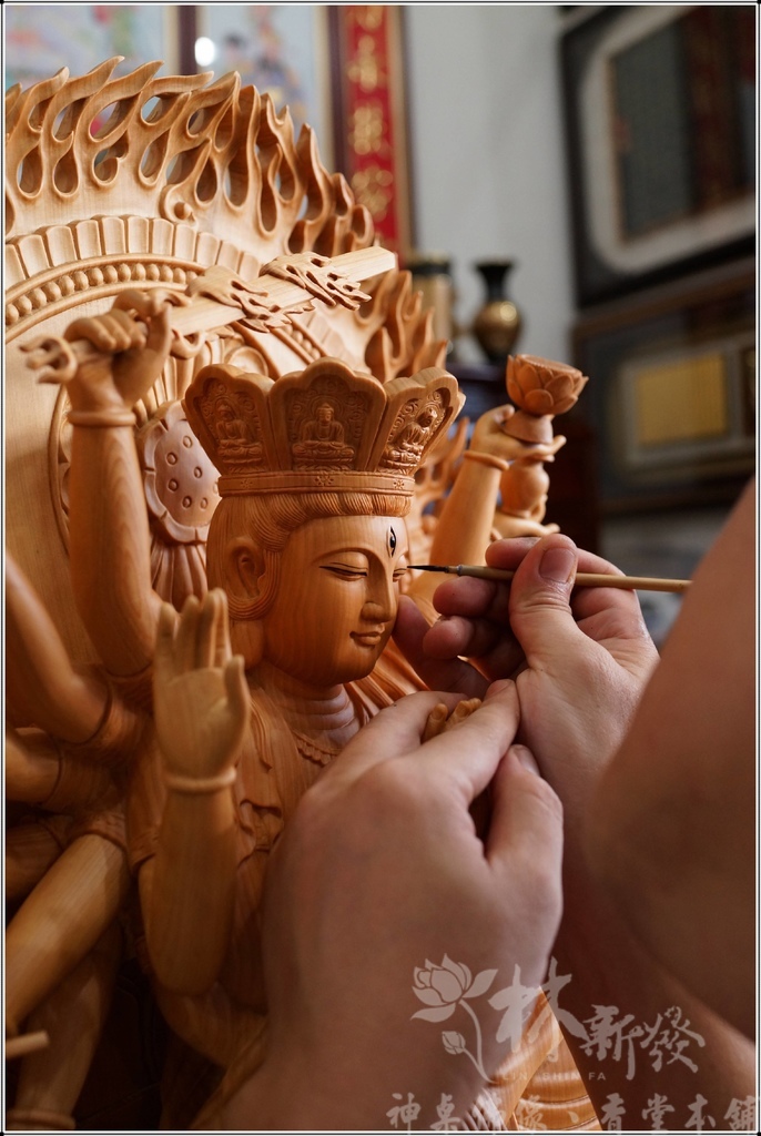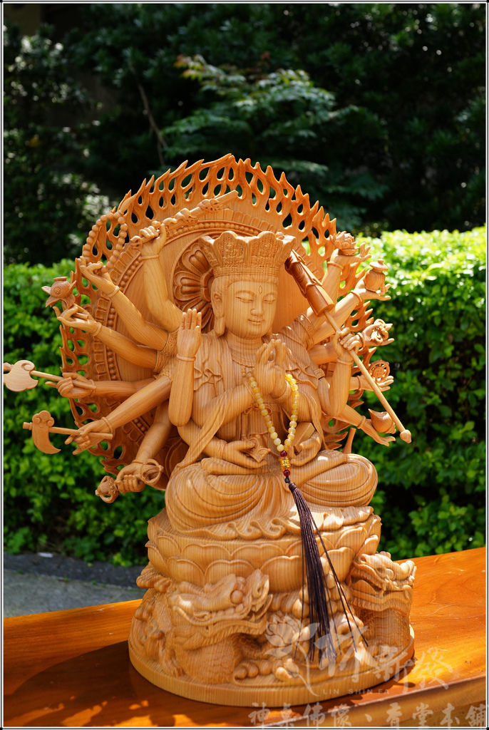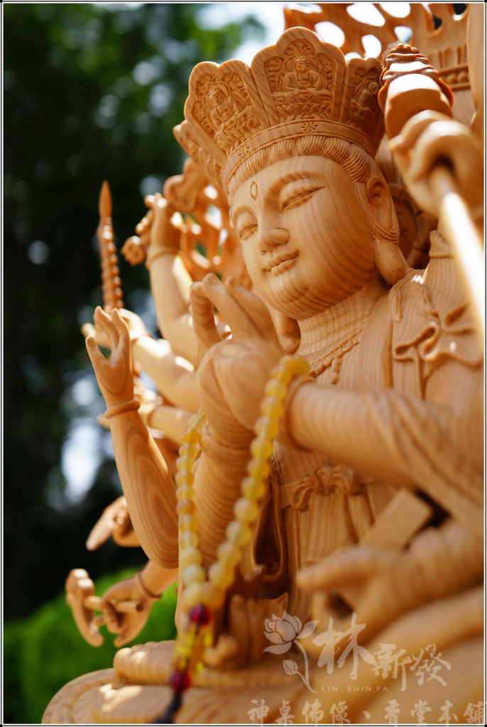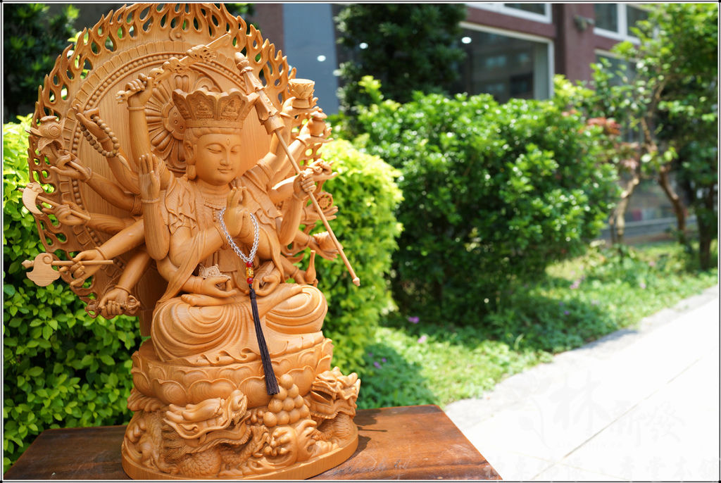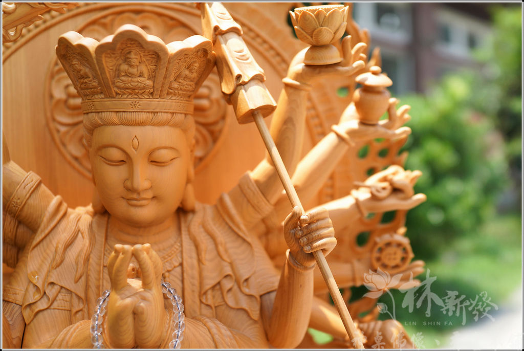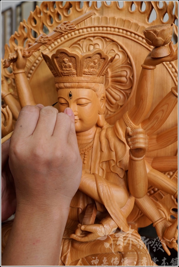 台灣檜木藝術作品,準提菩薩配上最高級數的台灣檜木精雕!