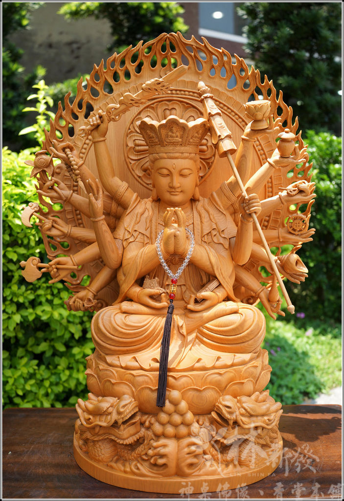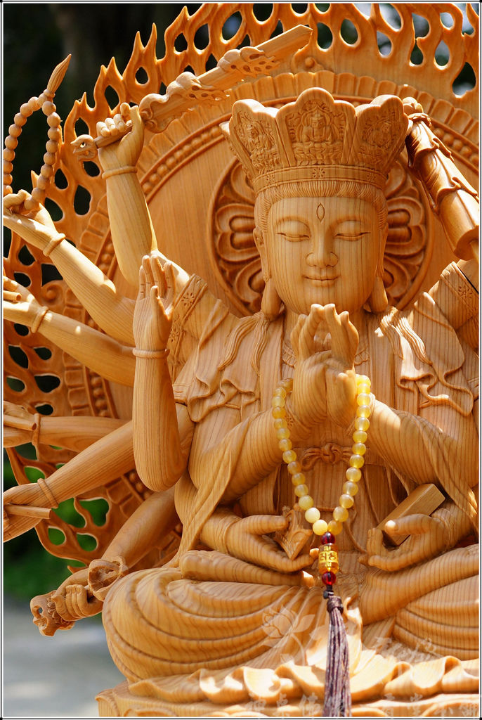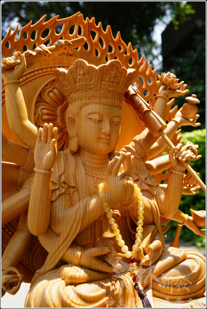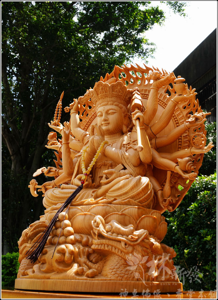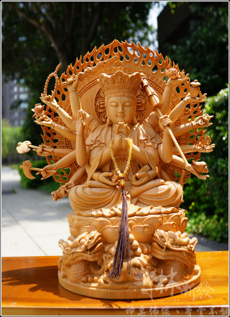 台灣檜木藝術作品,準提菩薩配上最高級數的台灣檜木精雕!