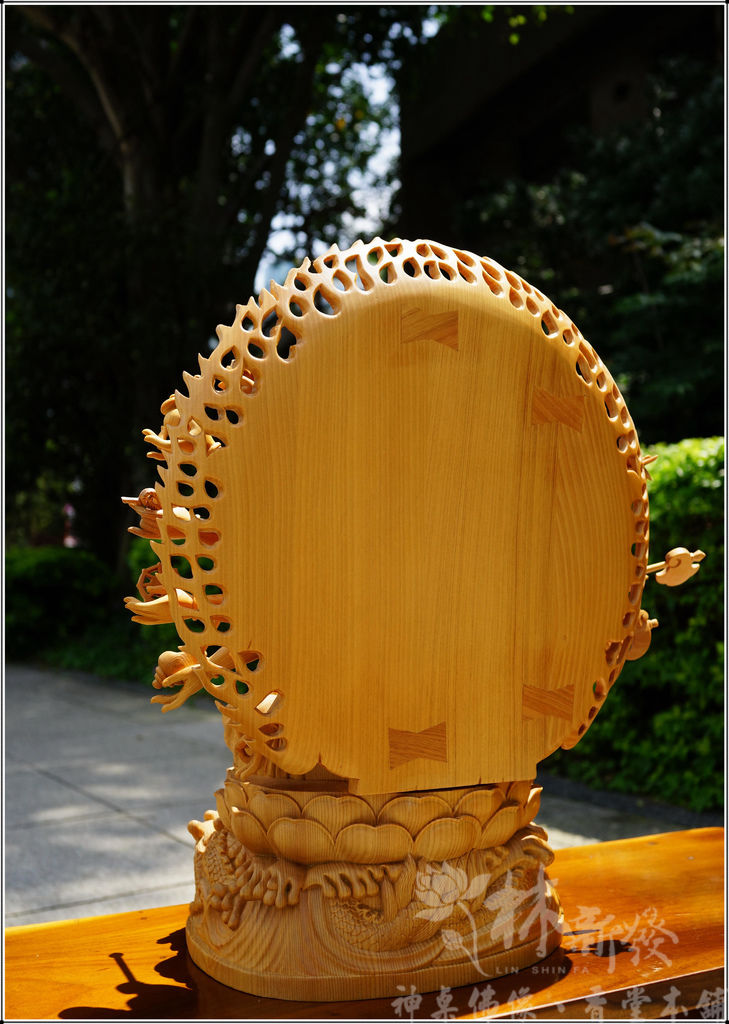 所以除了背光跟手是不接不行的以外,整個菩薩的身體、蓮花、以及下面的雙龍拱珠錦花雕刻